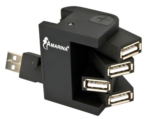 Amarina HUBAMA00027B Hub USB 2.0 multiposition 4 ports NoirCe hub USB va vous combler ! Grâce à lui, vous pouvez connecter jusqu'à 4 périphériques sur votre PC. Les prises sont facilement orientables pour permettre une disposition de vos périphériques correspondant à vos attentes.
